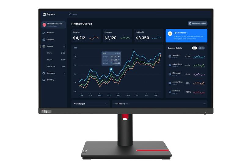 Den 21,5‑tom IPS‑monitor leverer Full HD‑billedkvalitet (1920 × 1080) med 60 Hz opdateringshastighed og 4 ms responstid. W‑LED‑baggrundsbelysning giver 250 cd/m² lysstyrke og 1000 : 1 kontrast, mens dynamisk kontrast når 3 000 000 : 1. Synsvinklen er 178° både horisontalt og vertikalt. Skærmen er udstyret med anti‑refleks‑behandling og reduceret blåt lys for øjenkomfort. Ergonomisk kan den tilt‑, swivel‑ og højdejusteres, og den understøtter VESA‑montering (100 × 100 mm).