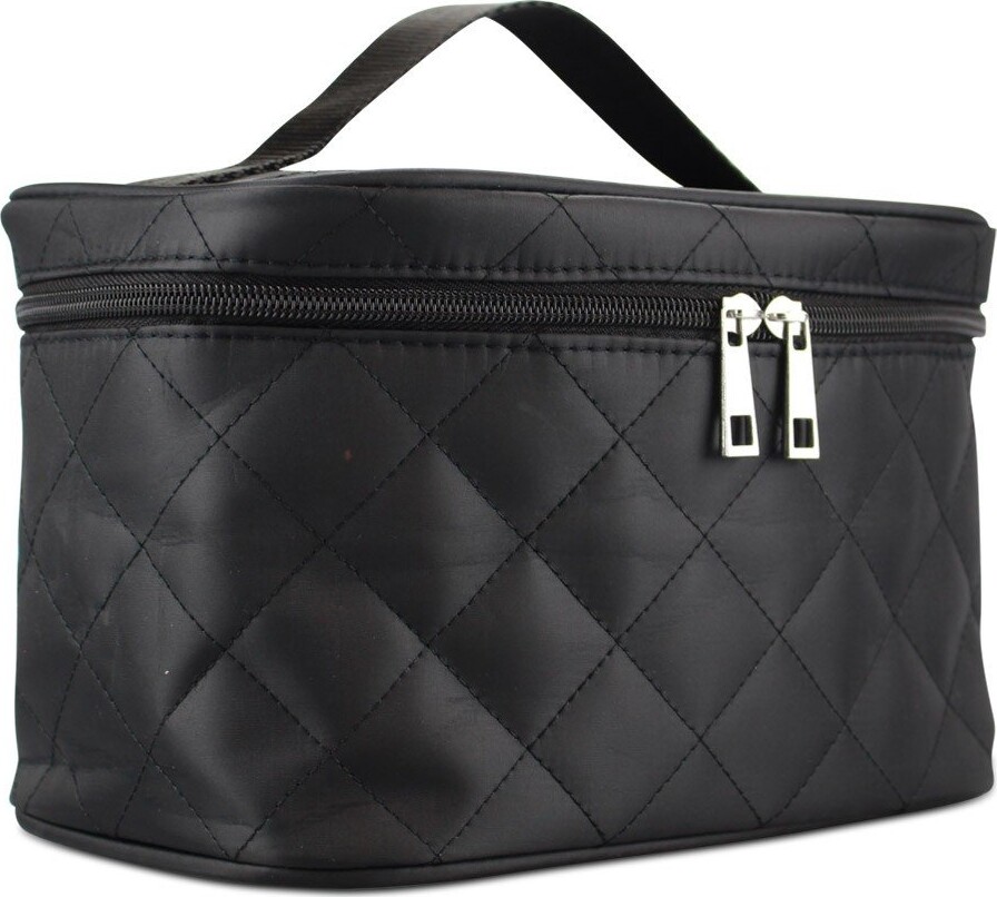 Studio Black Quilt Beauty Box er en sort, quiltet opbevaringsboks til skønhedsprodukter. Den måler 14 cm × 23 cm × 16 cm og er fremstillet af let nylon med indvendig foring af genbrugsplast. Indvendigt findes fem lommer samt elastik i låget, så pensler, læbestifter og andre småting kan organiseres overskueligt. Låget lukkes med lynlås, og en integreret bærehank gør boksen let at transportere. Materialet kan udvide sig efter behov og tåler maskinvask ved 30 °C samt tørretumbling på lav varme.