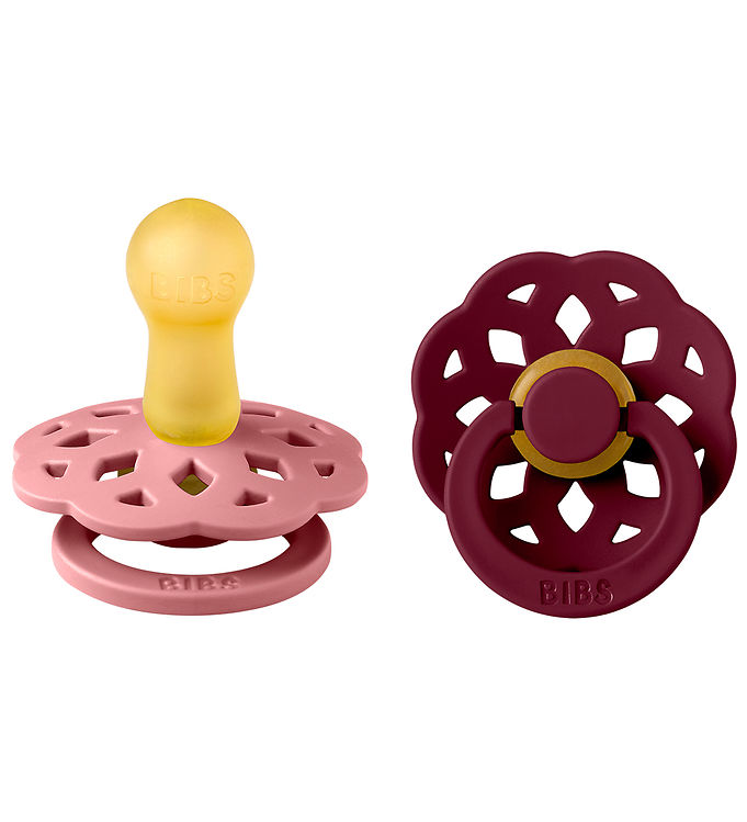 Dette sæt indeholder to runde sutte med størrelse 2 i farvekombinationen Dusty Pink/Elderberry. Suttehovedet er fremstillet af 100 % naturgummi (latex), mens skjoldet er lavet af 100 % polypropylen med lufthuller, der forhindrer fugt og vakuum på barnets hud. Sutterne kan steriliseres i kogende vand før første brug, rengøres ved at presse vand ud, og anbefales udskiftet efter ca. én måned. De er fri for BPA, PVC og ftalater, CE‑godkendt efter EN 1400+A2 og egnet til børn fra 6 måneder.