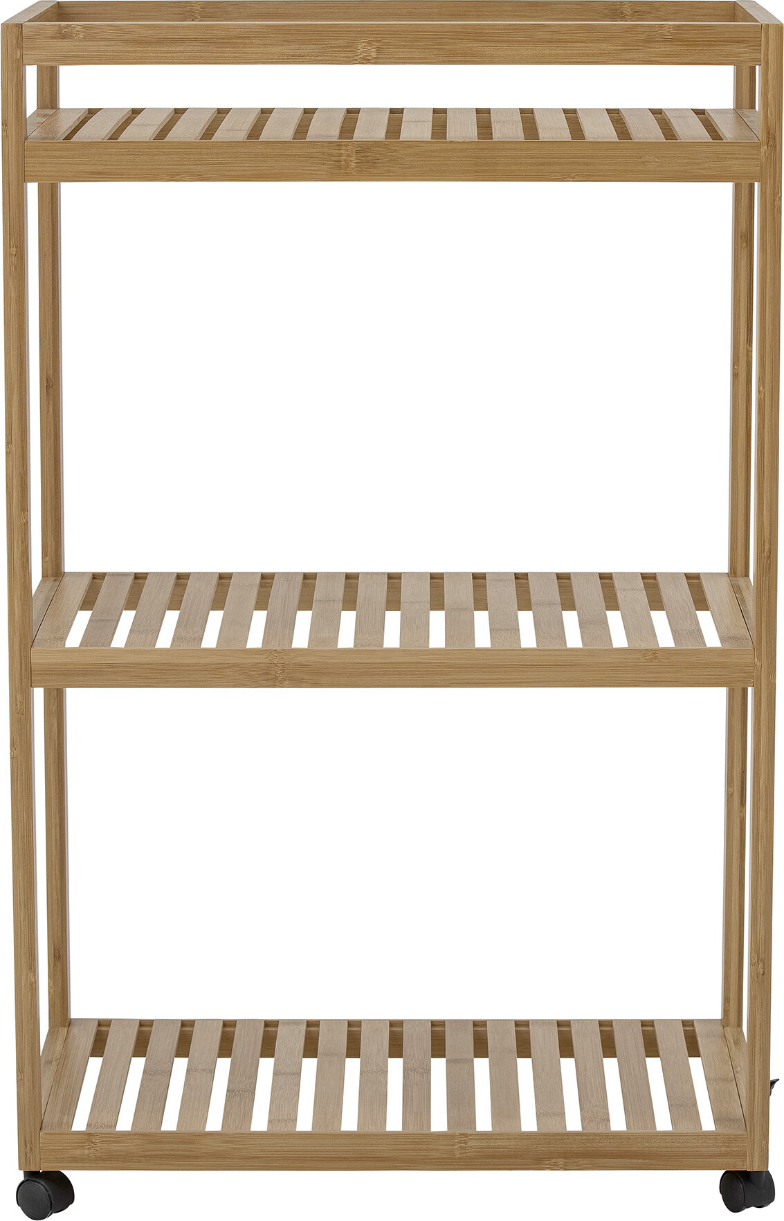 Reol Aden fra Bloomingville er en hjulbaseret hylde med dimensionerne Bredde: 30 cm, Højde: 85 cm og Længde: 53 cm. Reolen er konstrueret til opbevaring af genstande som sæbe, skønhedsprodukter eller håndklæder. Den mobile konstruktion, via hjul, giver fleksibilitet i rummet. Materialet er primært træ, hvilket bidrager til en naturlig æstetik. Reolen er designet med fokus på funktionalitet og passer til både indendørs og udendørs brug i overdækkede områder. Den er beregnet til at stå stabilt på en plan overflade.