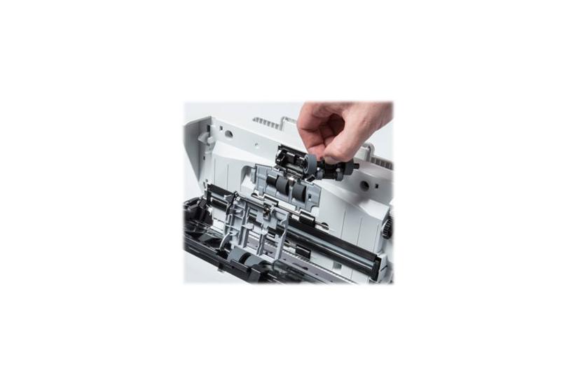PRK‑A3001 Scannerrullepakke indeholder fire udskiftningsruller i grå plast, som holder scanneren i drift ved udskiftning af slidte ruller. Rullerne er dimensioneret til at passe i de angivne scanner‑modeller ADS‑2200 og ADS‑270W, hvilket muliggør hurtig og problemfri udskiftning uden justering af mekanikken. Hver rulle vejer 117 g, og den samlede pakke vejer 140 g, med en højde på 115 mm, bredde på 35 mm og dybde på 192 mm, så den let kan opbevares i en standard kontorindretning.