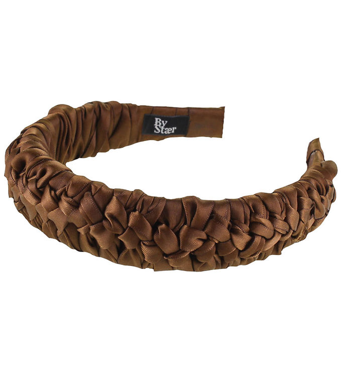 Den brune hårbøjle Poppy er fremstillet af et satinagtigt, fleksibelt stof uden metaldele. Overfladen er udformet i et fletmønster, som giver et struktureret udseende. Bøjlen kan placeres i både opsat og løst hår og påvirker hverken hårstruktur eller hovedbund. På indersiden er der et lille, diskret logo. Designet forhindrer tryk bag ørerne, så den kan bæres i længere tid. Materialet er let, giver en glat overflade og tillader håret at glide ind uden at blive revet. Den fleksible konstruktion tilpasser sig hovedets kontur og fungerer på både tykt og fint hår.