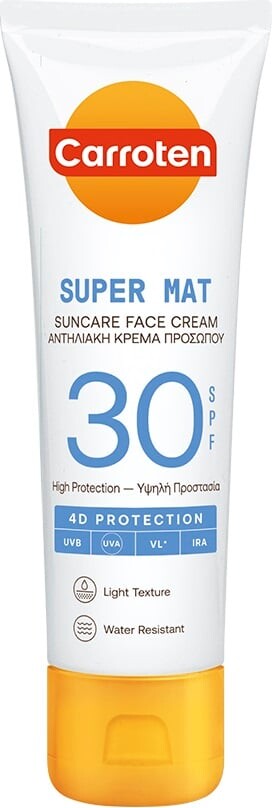 Carroten Face Sensitiv Cream SPF 50 er en let solbeskyttelsescreme designet til følsom hud. Formlen indeholder hyaluronsyre for intens hydrering, Vitamin E som en antioxidant og Grøn Te Ekstrakt, der beskytter mod miljømæssige skader. Cremen er specielt udviklet til at give en effektiv og let solbeskyttelse med en SPF 50-beskyttelsesfaktor. Den lette konsistens sikrer hurtig absorption og minimerer risikoen for fedtethed. Produktet er klinisk testet og egnet til daglig brug.