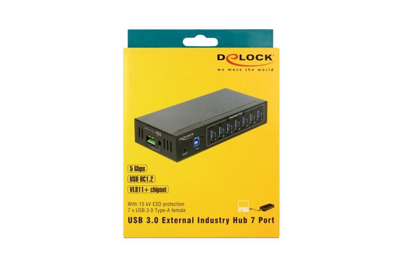 DeLOCK External Industry Hub 7 x USB 3.0 Type-A 15 kV ESD Protection - Sort