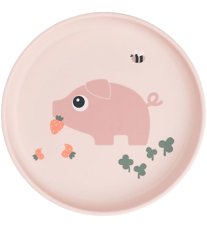 Tallerkenen er designet til børn med en antiskrid‑base, der holder den stabil under måltidet, og en høj kant, som gør det lettere at samle maden på gaflen. Den er fremstillet af fødevaregodkendt polypropylen, er BPA‑fri og fri for andre skadelige stoffer, samtidig med at materialet er stærkt, genanvendeligt og tåler hyppig brug. Overfladen har en blød pudderfarve med et legende Pigee‑motiv, som kan motivere barnet til at udforske mad. Tallerkenen kan anvendes i mikrobølgeovn og tåler opvaskemaskine.