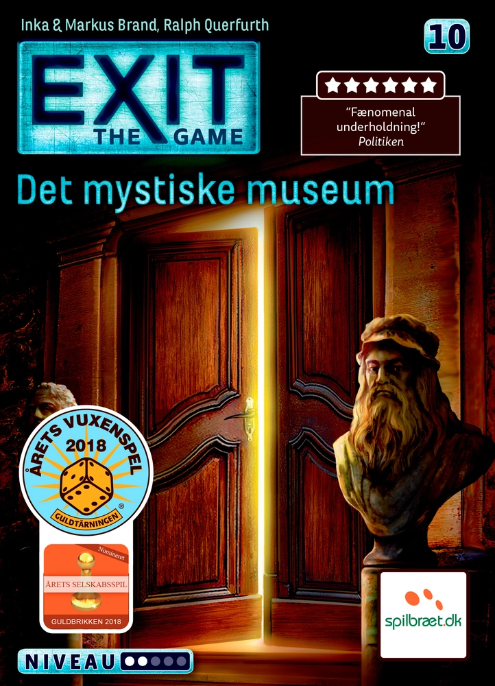 Exit Det mystiske museum er et escape room-spil designet til en eller flere spillere. Spillet præsenterer en udfordrende opgave, hvor spillerne skal løse en række gåder og mysterier for at ‘undslippe’ fra et historisk museum. Spillet er struktureret som en selvstændig oplevelse, der typisk tager 1-2 timer at fuldføre. Det indeholder fysiske elementer, såsom kort, kodebøger og små genstande, der bidrager til den overordnede udfordring. Spillet er beregnet til enkeltspillere eller små grupper. Formålet er at teste spillerens logiske sans og evne til at samarbejde under pres.