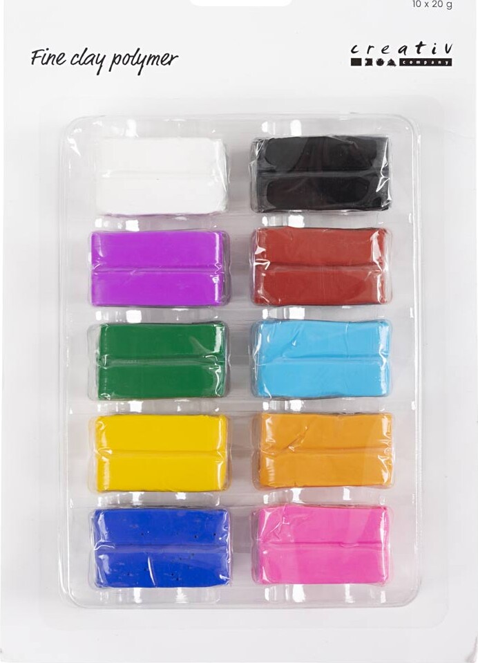 Fine Clay Polymer er et blødt, fleksibelt polymerler til modellering, leveret i en pakke med ti 20 g blokke i ti forskellige farver. Leret kan æltes i 4–5 minutter for at opnå optimal smidighed og formes til smykkevedhæng, perler, figurer eller andre dekorationer. Efter modellering hærdes det i en forvarmet ovn ved 120 °C (maks. 140 °C) i mindst 18 minutter, hvorefter det afkøles i 2–3 timer. Produktet opbevares bedst i en lufttæt beholder for at bevare fleksibiliteten.