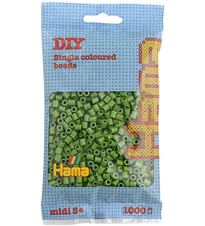 Dette sæt indeholder ca. 1000 midi-perler med en diameter på 5 mm i en ensfarvet olivengrøn nuance. Perlerne er beregnet til kreativ leg, hvor de kan samles på perleplader eller i fri form for at skabe mønstre og små 3‑D‑konstruktioner. De er velegnede til børn fra fem år og bidrager til udvikling af finmotorik og rumlig forståelse, samtidig med at de giver mulighed for farvekoordination uden brug af maling.
