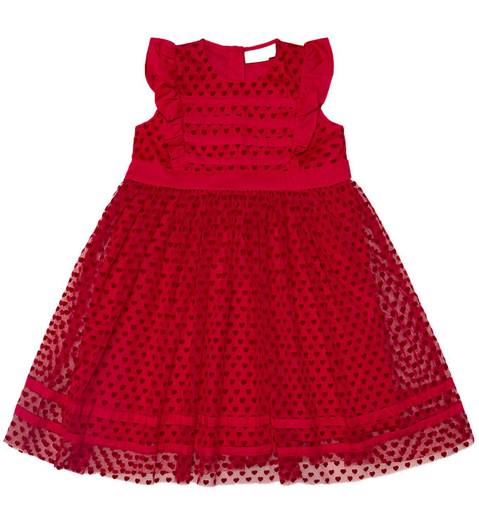 Isabelle dress – Samba er en kortærmet kjole i klar rød nuance med hjerteprint på overdelen. Kjolen er udformet med et puf underliv, der giver et legende silhuet, og den er designet til børn i alderen 2‑3 år. Materialet består af 50 % genanvendt polyester og 50 % økologisk bomuld, hvilket giver en blød og åndbar struktur. Farvekoden Samba angiver den specifikke røde nuanc, og kjolen fås i størrelserne 92 (2 år) og 98 (3 år) med lille, normal og stor pasform.