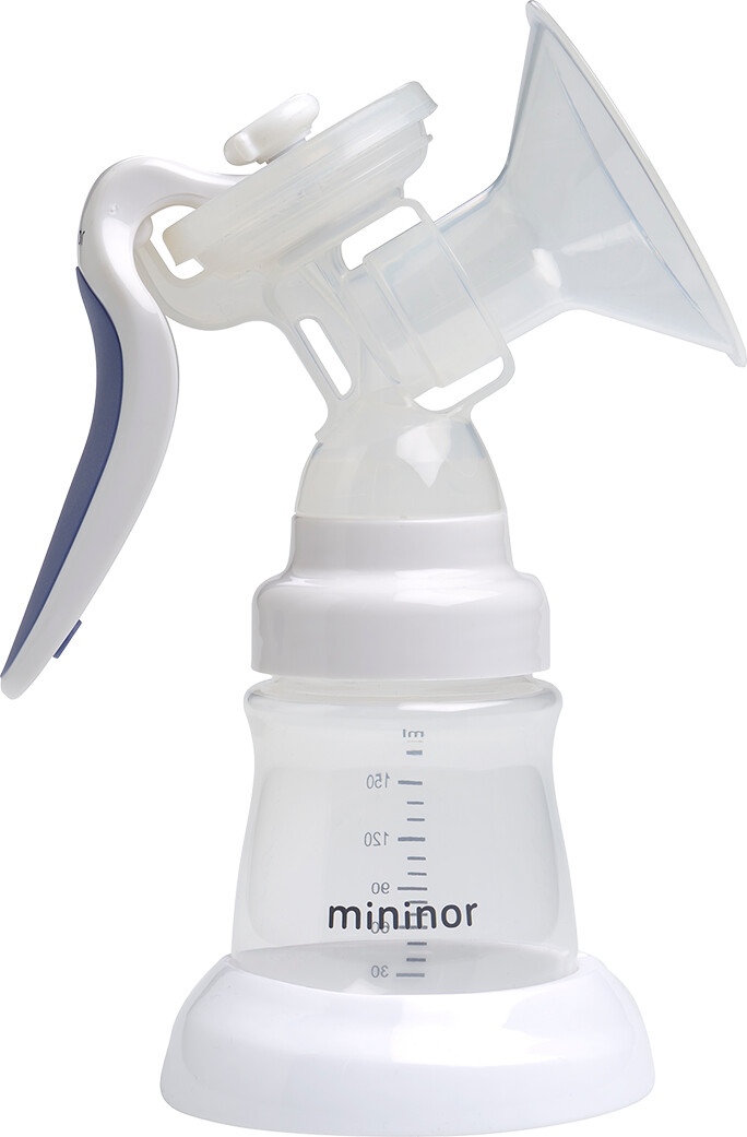 Mininor Brystpumpe - Manuel er en brystpumpe designet til hurtig mælkesamling. Pumpen består af en blød silikonepude, der direkte placeres mod brystvorten for at fremme mælketilførslen. Pumpens simple konstruktion omfatter en silikonepude og et rør, der effektivt opsamler den udstrømmende mælk. Den manuelle betjening sikrer fuld kontrol over pumpens hastighed og giver mulighed for at stimulere brystvorten individuelt. Pumpens størrelse gør den nem at transportere og bruge under f.eks. længerevarende rejser. Den manuelle betjening er ideel til situationer hvor elektricitet ikke er tilgængelig.