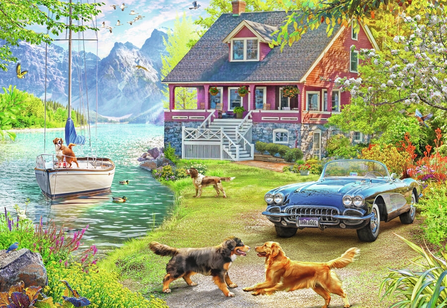 Dette puslespil indeholder 200 firkantede brikker, der tilsammen danner et billede af et sommerhus ved en sø med omgivende træer, vandkant og himmel. Motivets detaljerede landskab giver mulighed for at samle både større flader og mindre elementer som vinduer, døre og vegetation. Puslespillet er angivet for aldersgruppen fra otte år og egner sig til enkeltpersoner såvel som grupper, der ønsker at arbejde sammen om en fælles opgave.