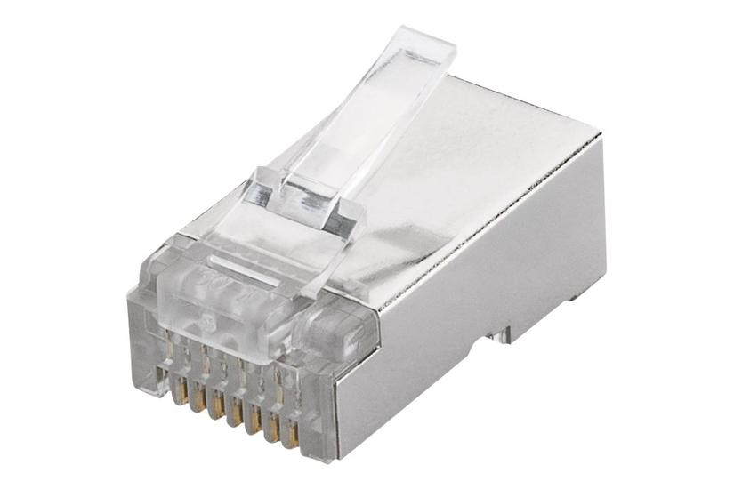 RJ45‑stikene i dette 10‑pakke er designet til Cat‑6‑standarder og leverer en afskærmet (STP) forbindelse, der minimerer elektromagnetisk interferens og krydstale i høje hastighedsmiljøer. Stikkene har en solid metalramme med guldbelagte kontakter for pålidelig signaloverførsel, og de passer til både UTP‑ og STP‑kabler med 23‑AWG ledninger. De er kompatible med Ethernet‑netværk op til 10 Gb/s og understøtter 250 MHz båndbredde. Installationen foregår ved at presse stikket på den afisolerede kabelender, så de indvendige ledere aligneres korrekt.
