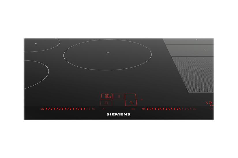 Siemens EX875LVC1E er en induktionskogeplade med fem kogefelter og indbyggede funktioner som PowerBoost, FlexZone, Touch Slider og PowerMove Plus. En frying sensor styrer temperatur for stegning. Pladen har en stillet stålramme og måler 5,1 × 81,2 × 52 cm, med indbygningsmål 5,1 × 78 × 50 cm. Den kan monteres i eksisterende hul og kræver kun tilslutning af el, vand og afløb til godkendte installationer. Garantien er 2 + 2 år.
