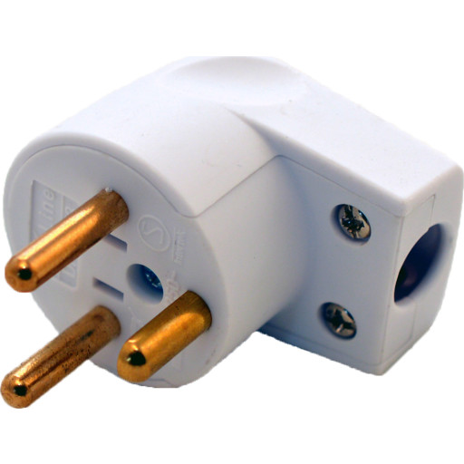 Stikproppen er en flad, vinklet udgave uden jordforbindelse, designet til 230 V‑net med en maksimal strømstyrke på 16 A. Den er hvid og har ledningen placeret i siden, så den kan monteres lodret i stikkontakter hvor stikbenet skal pege nedad. Formen gør, at den let kan installeres i begrænsede rum eller bag paneler, hvor en traditionel lodret stikprop ville være upraktisk. Produktet egner sig til elektrisk udstyr, der ikke kræver jordforbindelse, og giver en sikker og kompakt tilslutning.