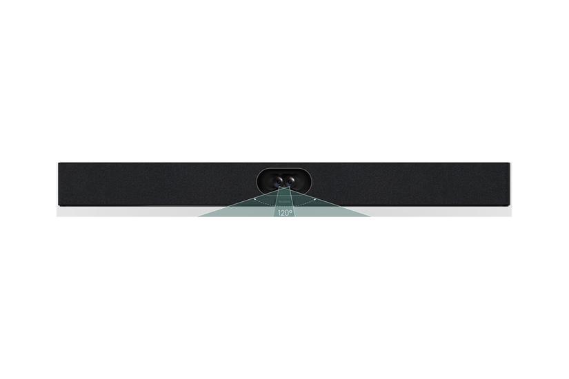 - Indbygget mikrofon med 6 m optagelsesrækkevidde, ekko‑eliminering og fuld‑duplex lyd via to 10 W højttalere.
